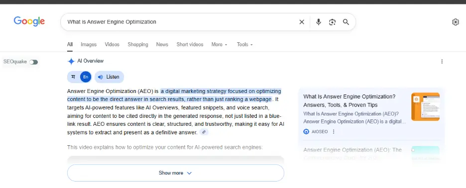 AI Overviews are just the beginning of a bigger change in search behavior. As users start relying more on voice assistants and conversational results, Answer Engine Optimization (AEO) will become a standard SEO practice.